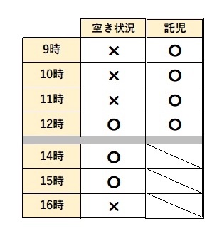 △⇒施術内容によってはご予約可能 ×⇒ご予約不可