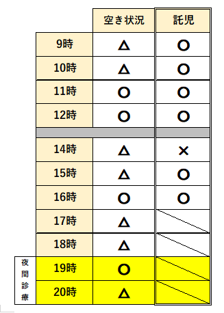 △⇒施術内容によってはご予約可能 ×⇒ご予約不可