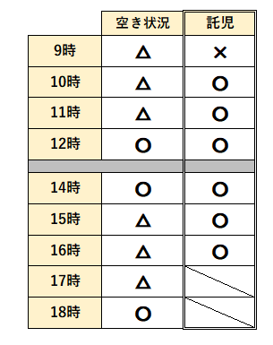 △⇒施術内容によってはご予約可能 ×⇒ご予約不可