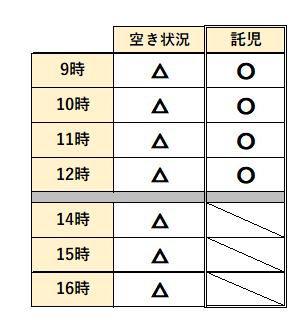 △⇒施術内容によってはご予約可能 ×⇒ご予約不可