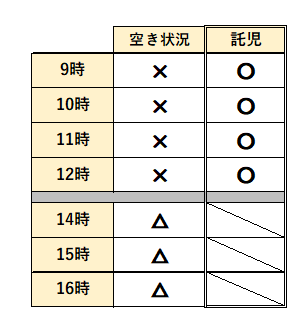 △⇒施術内容によってはご予約可能 ×⇒ご予約不可