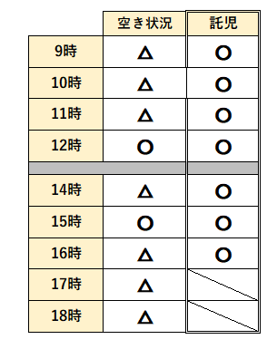 △⇒施術内容によってはご予約可能 ×⇒ご予約不可