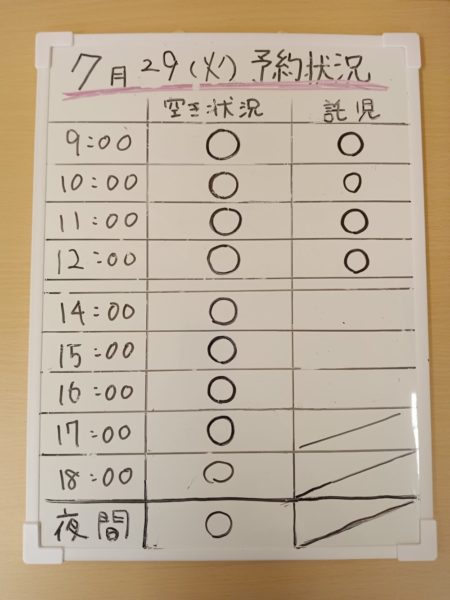 2025年07月28日(月)予約状況7月29日(火)ご予約状況|那珂川市ヒヨコ堂なかばる整骨院