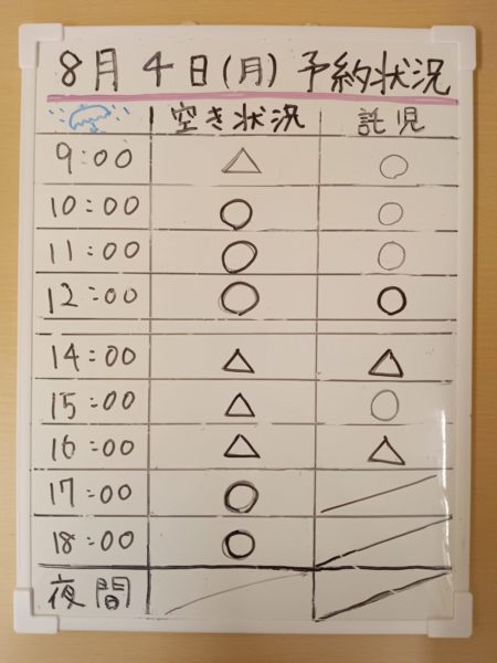 2025年08月04日(月)予約状況8月4日(月)ご予約状況|那珂川市ヒヨコ堂なかばる整骨院
