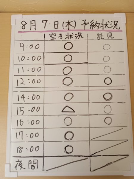 2025年08月06日(水)予約状況8月7日(木)ご予約状況|那珂川市ヒヨコ堂なかばる整骨院