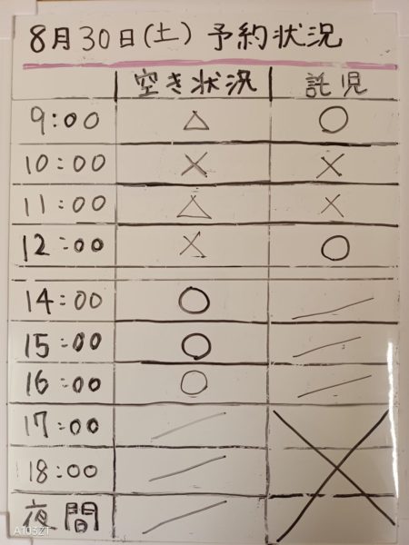 2025年08月29日(金)予約状況8月30日(土)ご予約状況|那珂川市ヒヨコ堂なかばる整骨院