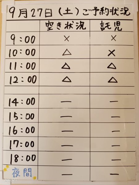 令和7年9月27日(土)のご予約状況をお知らせいたします。