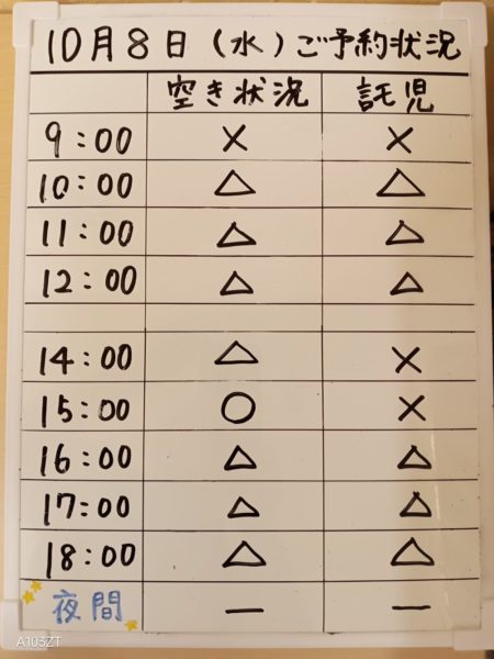 令和7年10月8日(水)のご予約状況をお知らせいたします。