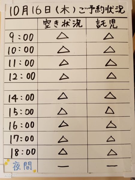 令和7年10月16日(木)のご予約状況をお知らせいたします。