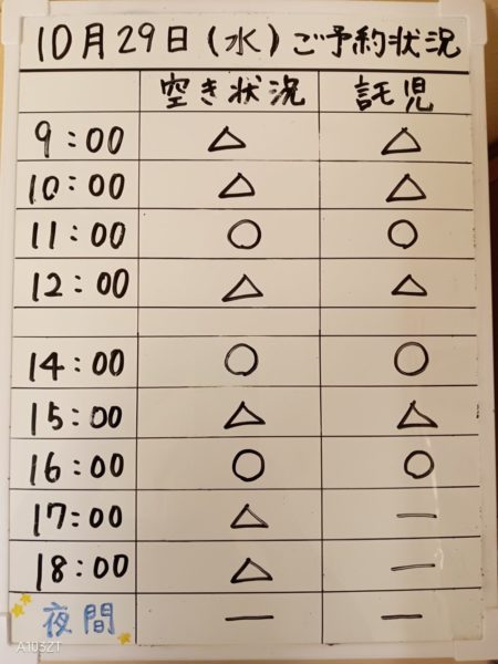 令和7年10月29日(水)のご予約状況をお知らせいたします。