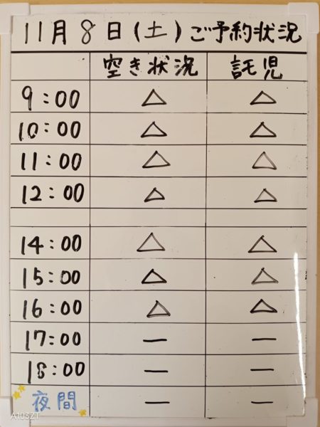 令和7年11月8日(土)のご予約状況をお知らせいたします。