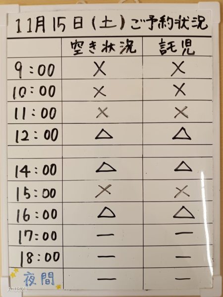 令和7年11月15日(土)のご予約状況をお知らせいたします。