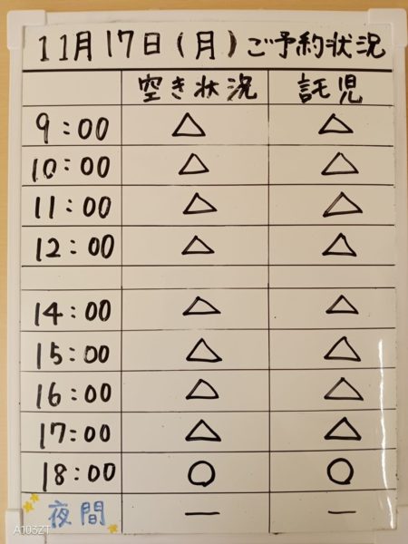 令和7年11月17日(月)のご予約状況をお知らせいたします。