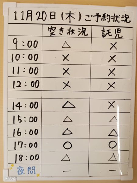令和7年11月20日(木)のご予約状況をお知らせいたします。