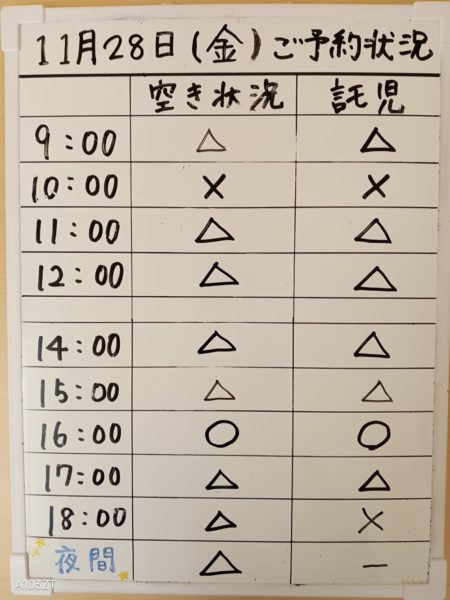 令和7年11月28日(金)のご予約状況をお知らせいたします。