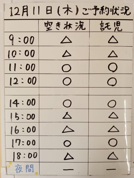 令和7年12月11日(木)のご予約状況をお知らせいたします。