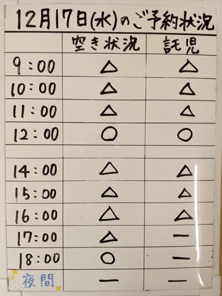 令和7年12月17日(水)のご予約状況をお知らせいたします。
