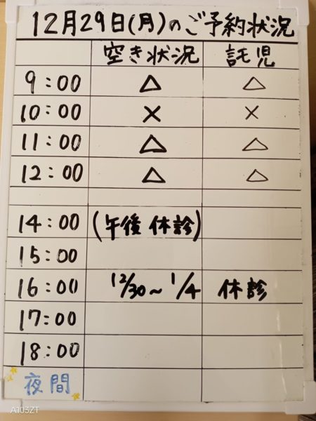 令和7年12月29日(月)のご予約状況をお知らせいたします。