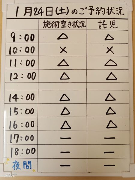 令和8年1月24日(土)のご予約状況をお知らせいたします。