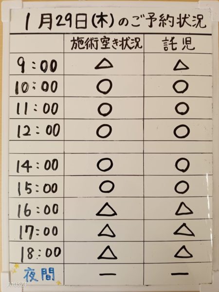 令和8年1月29日(木)のご予約状況をお知らせいたします。