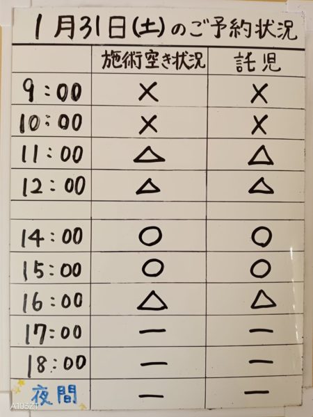 令和8年1月31日(土)のご予約状況をお知らせいたします。