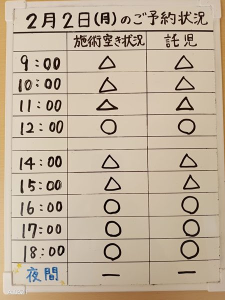 令和8年2月2日(月)のご予約状況をお知らせいたします。