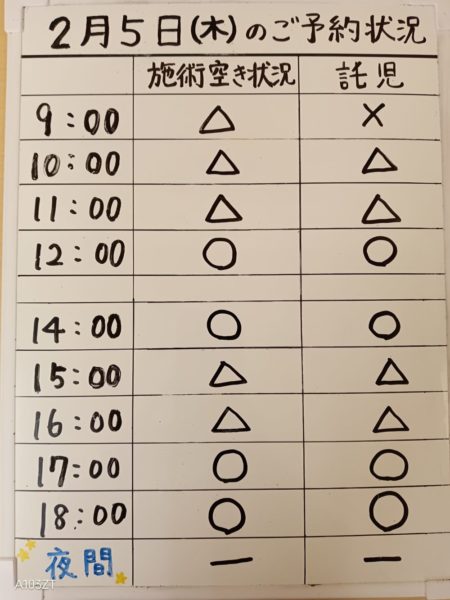 令和8年2月5日(木)のご予約状況をお知らせいたします。