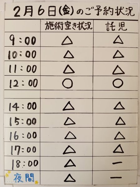 令和8年2月6日(金)のご予約状況をお知らせいたします。