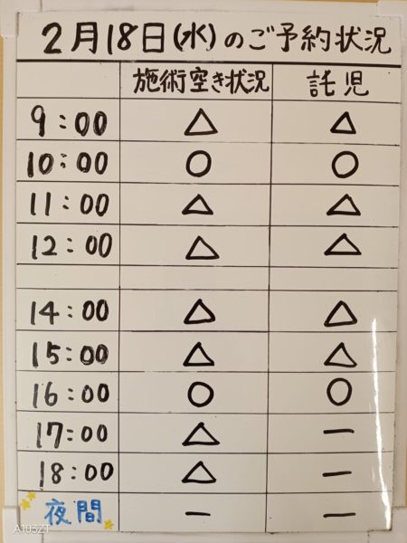 2026年02月17日(火)予約状況令和8年2月18日(水)のご予約状況|那珂川市ヒヨコ堂なかばる整骨院