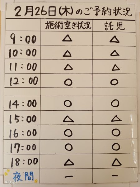 令和8年2月26日(木)のご予約状況をお知らせいたします。