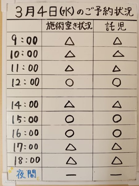 令和8年3月4日(水)のご予約状況をお知らせいたします