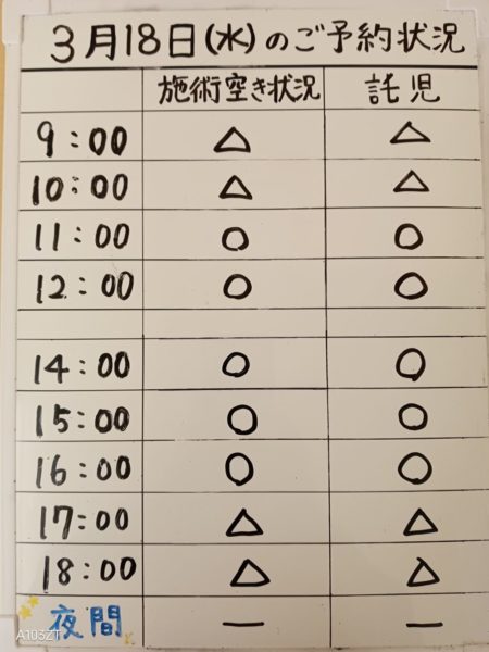 令和8年3月18日(水)のご予約状況をお知らせいたします。