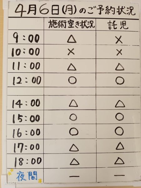 令和8年4月6日(月)のご予約状況をお知らせいたします。