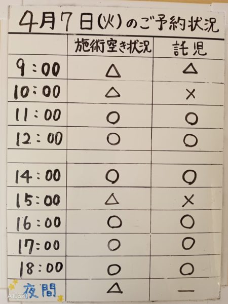 令和8年4月7日(火)のご予約状況をお知らせいたします。