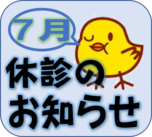 【7月休診のお知らせ】 ●22日(木)㊗→休診 ●23日(金)㊗→休診 ●24日(土)→午前のみ診療 ※託児有ります ※連休前後・24日(土)は、早めにご予約が埋まる可能性があります! ご予約はお早めに、LINE … 続きを読む 【7月休診日のお知らせ】