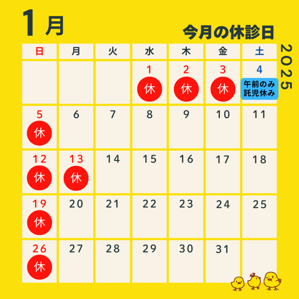 【1月休診日のお知らせ】